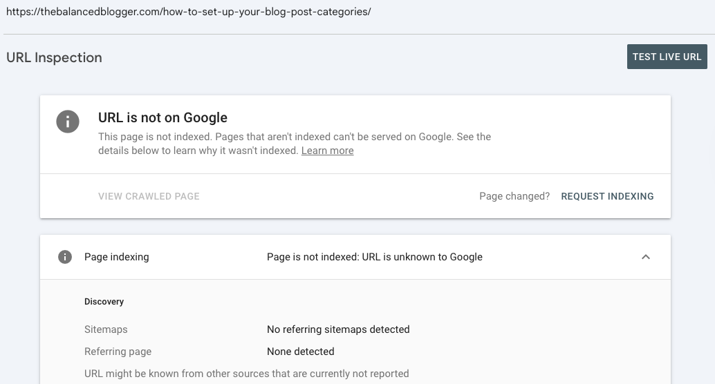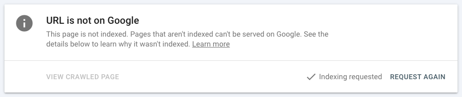 Google Search Console will then tell you that this URL is not on Google. This means that it will not show up on Google search results.