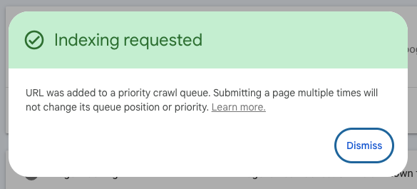 In my experience, from this point, it then takes around 24 hours for the webpage/blog post that you’ve submitted to be indexed.