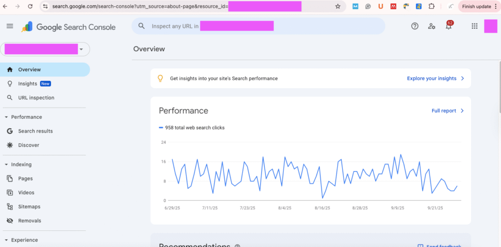 Once your page is indexed, you’ll be able to click ‘Explore your insights’ at the top of the Search Console and see information about how people are finding your blog.