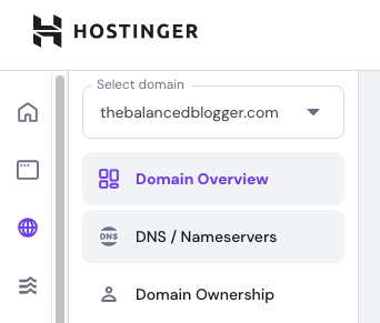 If you’re with Hostinger for your WordPress hosting, go to your Hostinger Dashboard and select ‘DNS/Nameservers’ on the left-hand side.