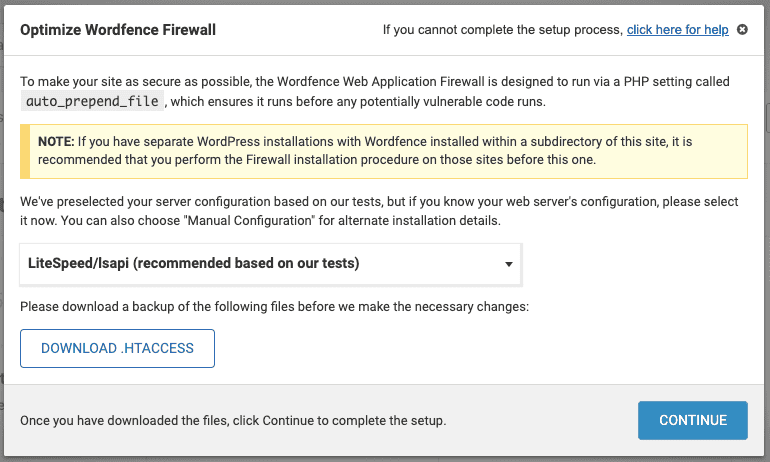 You’re welcome to purchase Wordfence Premium, Care, or Response if you’d like, but for the purpose of this tutorial, we’re focusing on Wordfence Free.