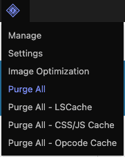 If you are using LiteSpeed Cache, hover over the plugin’s symbol at the top of your Dashboard and then click ‘Purge All.’