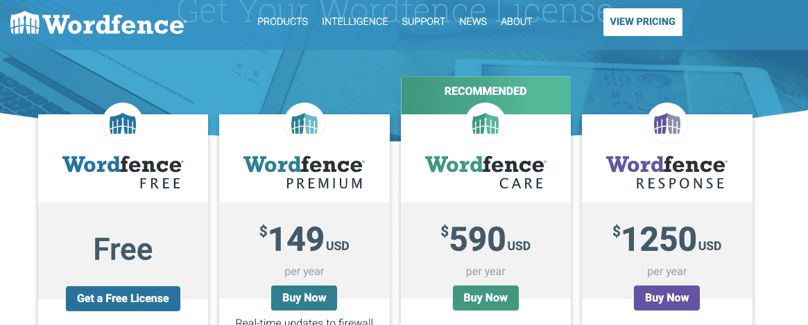 You’ll be taken to the Wordfence website where you can see all of the Wordfence plans.